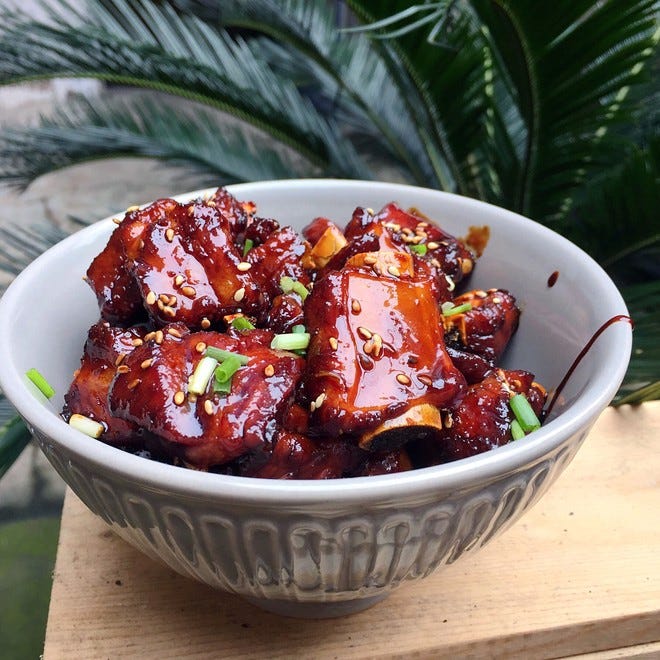 After several experiments, I created this cross between a bread and pastry dough that works perfectly for making filled buns. I generally fill with a BBQ filling, but you can be creative.Ingredients | Sweet And Sour Spare Ribs Chinese½ cup white sugar1 cup warm milk (110 degrees F/45 degrees C)1 tablespoon active dry yeast4 cups bread flour2 eggs, beaten (divided)6 tablespoons vegetable oil2 teaspoons salt2 teaspoons water1 teaspoon sesame seeds for garnish (divided) (Optional)DirectionsWhisk the sugar and milk together in a large mixing bowl until the sugar is dissolved. Stir in the yeast, and let stand until a frothy layer forms on the milk, about 10 minutes. Stir in the flour, most of the beaten eggs (reserve about 1 tablespoon of egg in a small bowl for later), vegetable oil, and salt, mixing well until thoroughly combined.Turn the dough out onto a well-floured work surface, and knead until smooth and elastic, about 10 minutes. The dough should be slightly sticky. Place the dough into a large oiled bowl, cover with a damp cloth or plastic wrap, place the bowl in a warm spot, and let rise until doubled, 2 to 3 hours.Line a baking sheet with parchment paper.Remove the dough from the bowl, and knead it briefly to punch down, about 1 minute. Roll the dough out into a rope, and cut it into 12 equal-sized pieces. Roll each piece into a ball, and use your fingers to flatten each ball into a disc about 5 to 6 inches in diameter.Place about 2 tablespoons of your favorite bun filling in the center of the dough circle, and bring the edges of the dough up over the filling. Pinch and twist the top together to seal in the filling. Make sure there are no open spots. Place each filled bun seam-side down on the parchment paper while you finish making the rest of the buns. Cover the filled buns with plastic wrap, and let them rise for 30 minutes.Preheat oven to 350 degrees F (175 degrees C).Beat the 1 tablespoon of reserved beaten egg with the water to make an egg wash, and brush the top of each bun with the egg mixture. Sprinkle each bun with a few sesame seeds, and bake in the preheated oven until the tops are browned and shiny, turning the baking sheet around halfway through baking, for 20 to 30 minutes. Serve warm.Info | Sweet And Sour Spare Ribs Chineseprep: 30 mins cook: 20 mins additional: 2 hrs 30 mins total: 3 hrs 20 mins Servings: 12 Yield: 12 buns